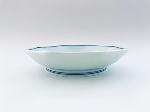 三人の異人さんと帆船を描きました。盛る料理を意識して、中心部分に余白を持たせました。器は使い勝手の良い、深みあるお皿です。