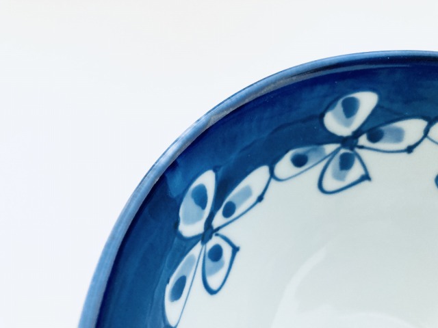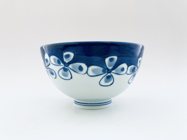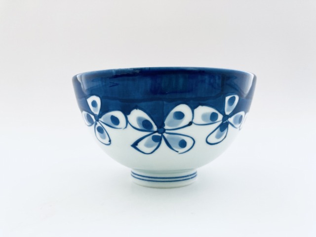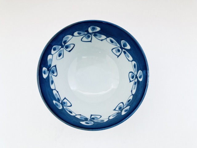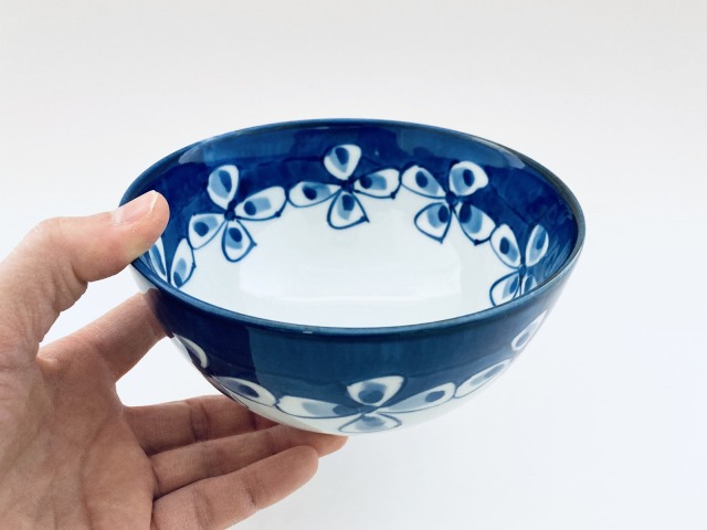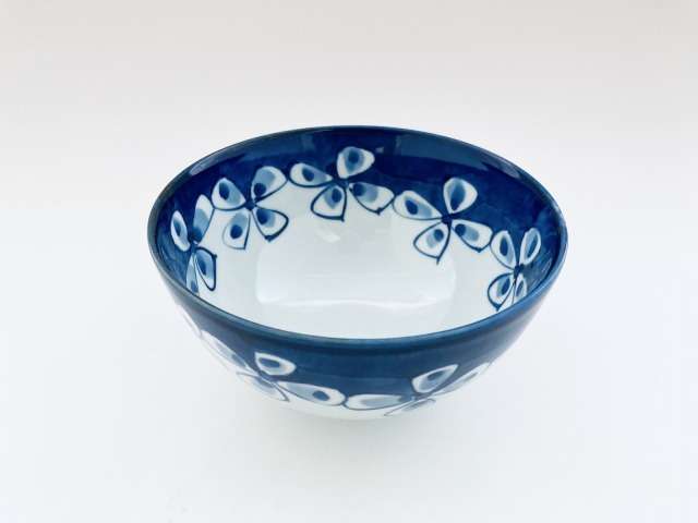 四葉のクローバーをイメージさせる花がリズミカルに描かれています。見た目よりも懐が大きい丼です。
