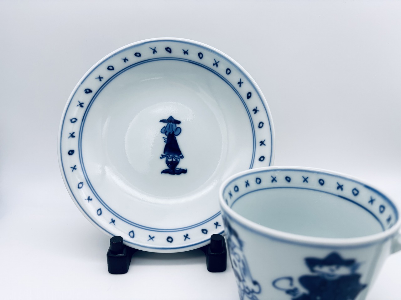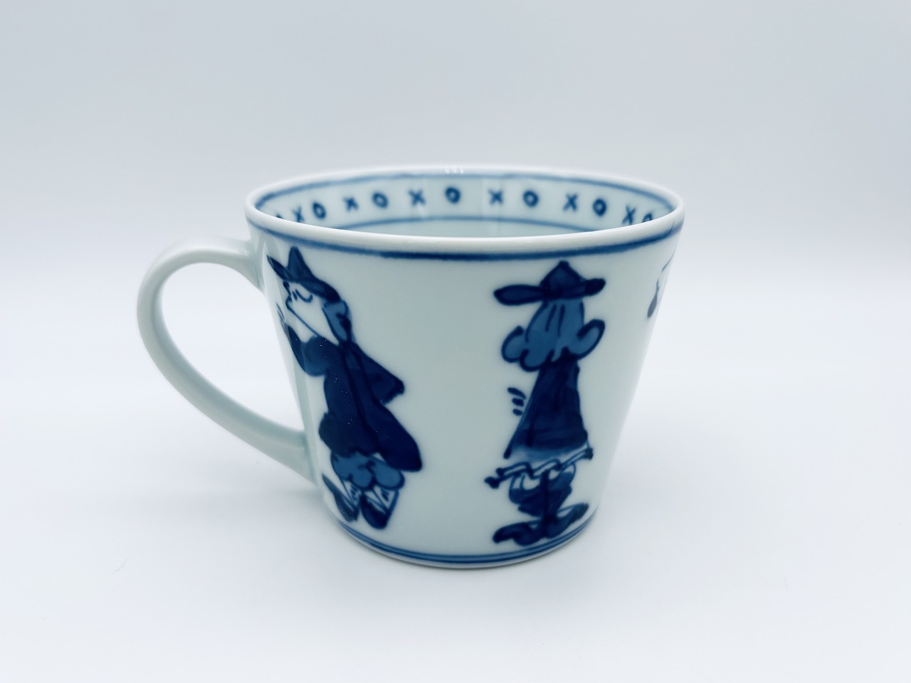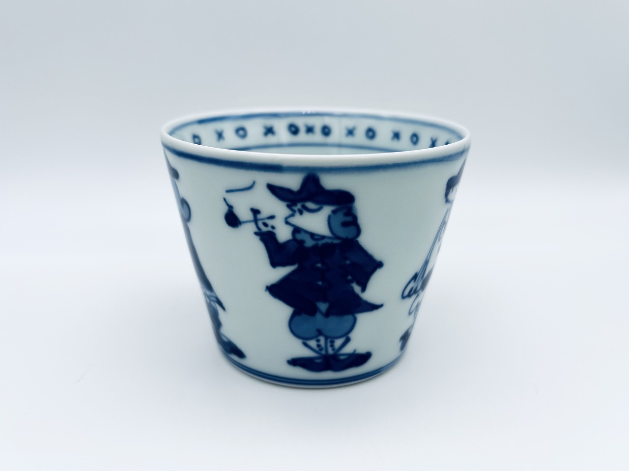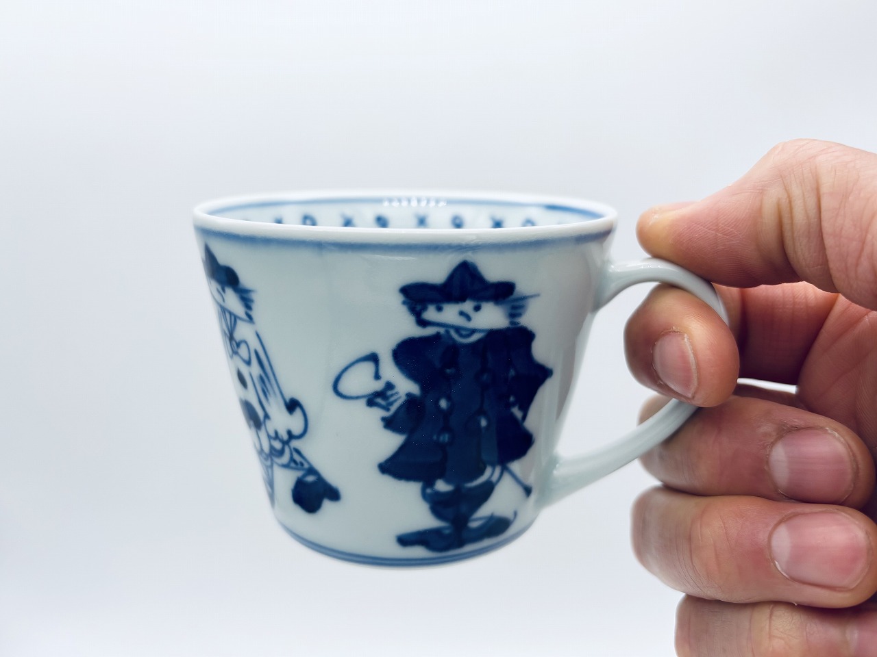 そば猪口に取手を付けたような面白い形状のコーヒーカップです。渕の絵柄も面白いですね。