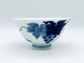 みずみずしいブドウを表現するために、あえて線描きをエンピツで描きました。本焼成後、エンピツは燃えて呉須で枠取りされていない柔らかいブドウが完成します。軽くて丈夫で使いやすいく、渕の反り具合が口に優しい飯碗です。三サイズございます。