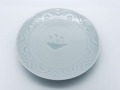 2026年に青花ブランド誕生50周年を迎えるにあたり、青花ブランドの新たな『時』を刻む想いをこめて新ブランド『青花刻(せいかこく)』を作りました。渕の紋様は、1602年に設立された世界初の株式会社であるオランダ東インド会社(VOC)をデザインしたものです。オランダ東インド会社(VOC)とは17世紀、中国磁器の輸出停止に伴い、日本の有田焼(伊万里)を代替品として大量にヨーロッパへ輸出するなど、貿易を中心にアジア全域で活動した巨大貿易会社です。見込みの帆船は風を受けて順調に海を進む様子から「順風満帆」を象徴し、物事が上手くいくように、商売繁盛の願いも込めた開運の縁起物として施しました。
