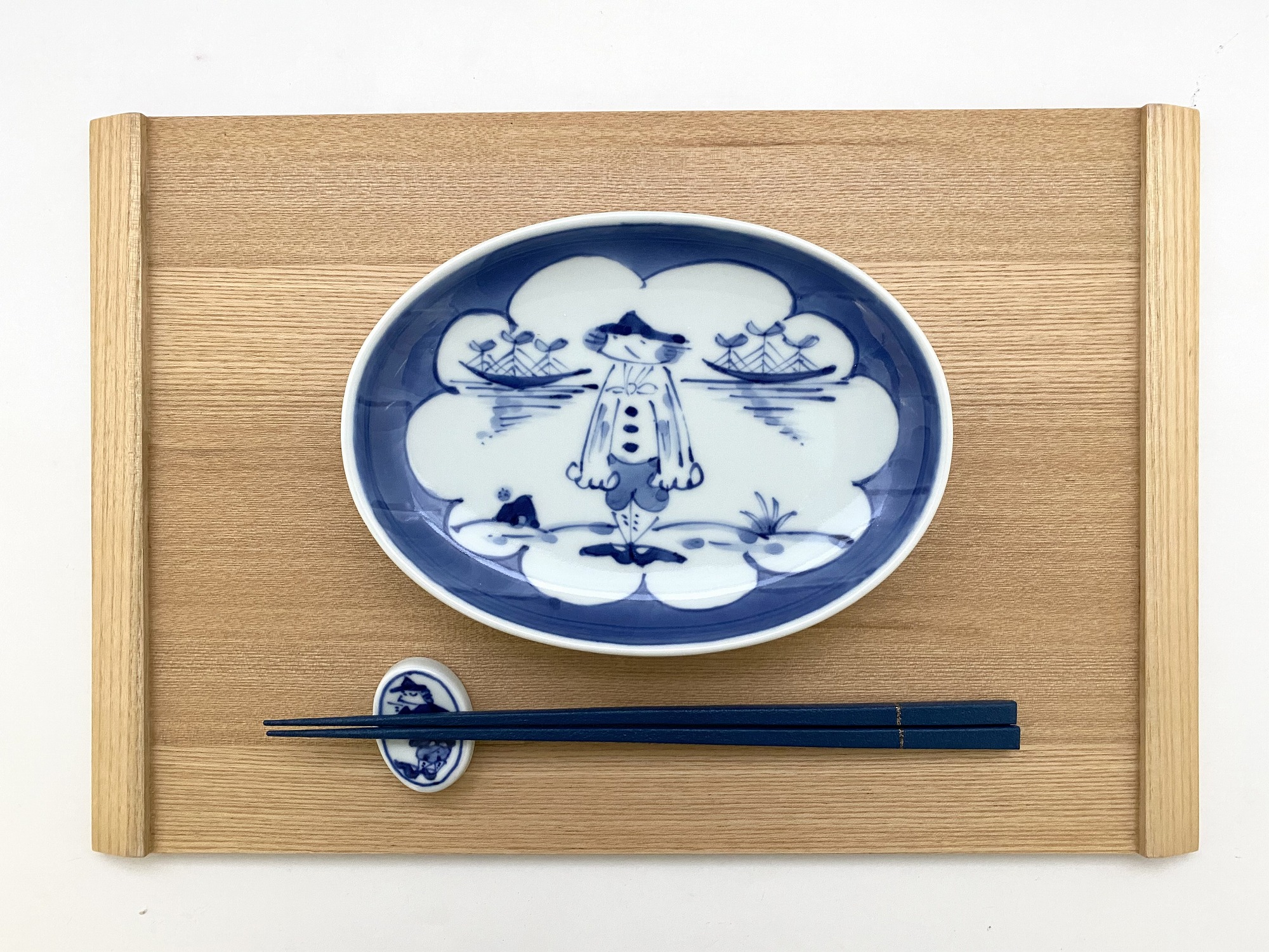 mo雲間取マント異人小判銘々皿 しん窯青花