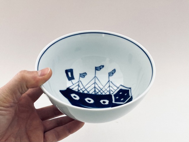 mo紅毛人5寸深丼 しん窯 青花