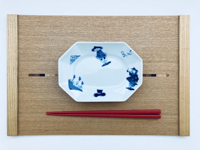 mo異人づくし八角長角取皿 しん窯 青花