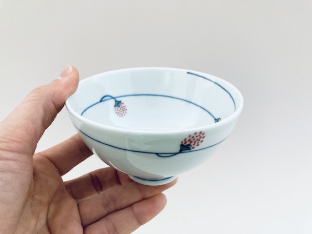 mo(赤)つるいちご3.8寸丸飯碗 しん窯 青花