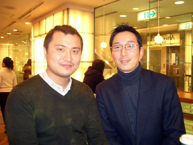 TEL 0955-43-2215FAX 0955-43-2889 トップページ 青花匠日記 東京出張その2 青花匠日記 東京出張その2 先週末の続きです。仕事を通していろんな出会いがありました。その一人に古庄さんという方がいらっしゃいます。デザイン事務所を営まれていて、今回の三越作陶展のハガキを作って下さった方です。知り合いからの紹介で生まれたこの御縁。彼は九州人で幼い頃、一時佐世保に住んでらしたとのことで、とても親近感を覚えました。伝統工芸や産業に対する熱い想いをお持ちで、私より年下ですが、人間的魅力にひかれています。(2008/2/20)●渋谷のカフェにて 青花匠日記