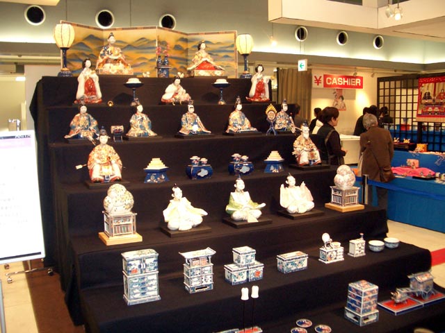 最後の日、二子玉川島屋へ向いました。ここでは有田焼フェアが開催中で、青木龍山先生や柿右衛門先生達の作陶展をメインに、世界最大の七段飾り雛人形が目玉として展示。また旧西有田地区の農産物も大変人気で、たくさんのお客様で賑わっていました。
