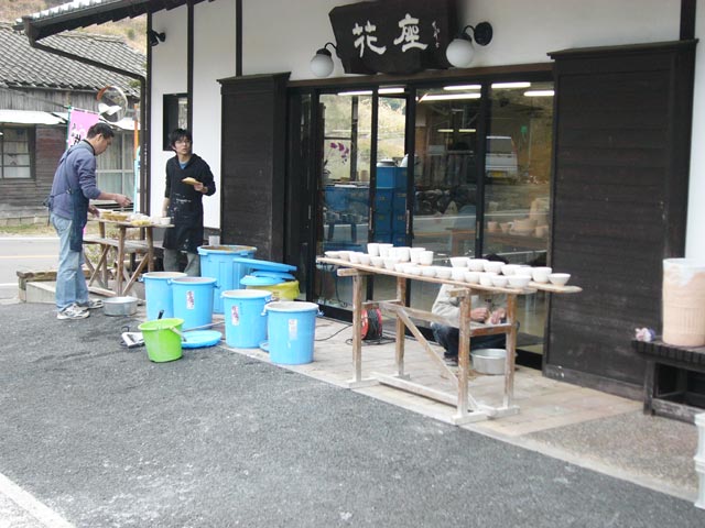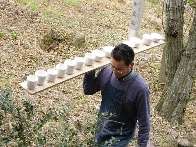 TEL 0955-43-2215FAX 0955-43-2889 トップページ 青花匠日記 登り窯焚き準備 青花匠日記 登り窯焚き準備 今日夕方より今年最初の登り窯が焚かれます。今回の窯は主に、第9期生の卒業作品で占めていて、半年間学んできた成果が試されます。(2008/2/22)●教室「花座」の前で準備スタート●たくさんの作品に釉薬がかけられました●可愛いゾウさんの置物です●丁寧に高台部分の釉薬をはぎます●現場監督の「まるちゃん」…静かに見守っています●側に来て何か話したい様子●急斜面を何度も運ぶ姿はまさに職人芸●火の通りを考えて、慎重に窯を積みます●窯の中から一枚 2008.02.22 20:54 青花匠日記