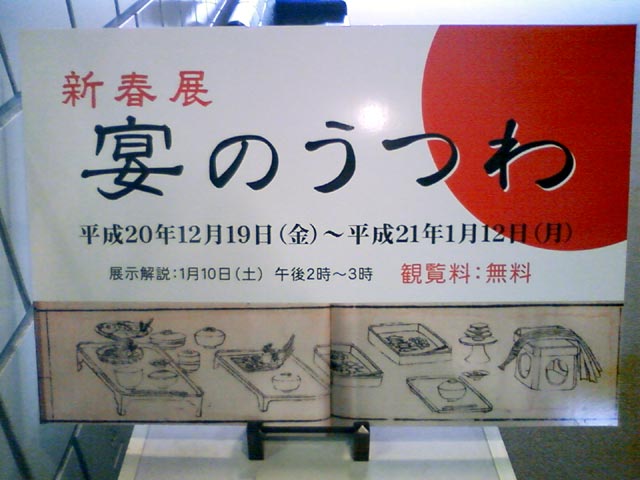お正月の合間に九州陶磁文化会館で開催されている「宴のうつわ」展を見てきました。江戸時代における肥前陶磁器のモチーフはほとんどと言ってよいくらい、吉祥文が描かれています。おそらく、様々なお祝いの席に必要とされたのでしょう。とにかく器の魅力が素晴らしく、これらの器をより引き立てる料理は、逆に素材を生かしたシンプルなものであったと文献で学びました。おそらく大名や武士、商人など限られた上流階級の人々に使われたのではないでしょうか。当時の華やかな宴が目に浮かびます(2009/1/5)