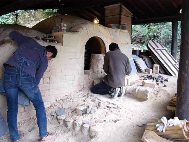 今年最初の登り窯焚きです。今回は陶芸教室第10期生の卒業作品がギッシリ積んであります。朝から釉薬掛けに始まり、夕方は皆さんで巻き運びを行いました。たまたまご来場のお客様も飛び入り参加。ひな人形や工房の様子を写真に撮っていただき、その場ですぐにプリントしてくださいました。小城市のM様、心より感謝申し上げます。(2009/2/20)