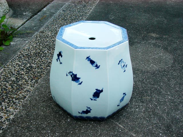 しん窯青花では、八角ミニテーブルセットと楕円ミニテーブルセットを販売しています。八角の形状には、青花のオリジナル文様として人気の高い異人づくし文様をデザインしました。