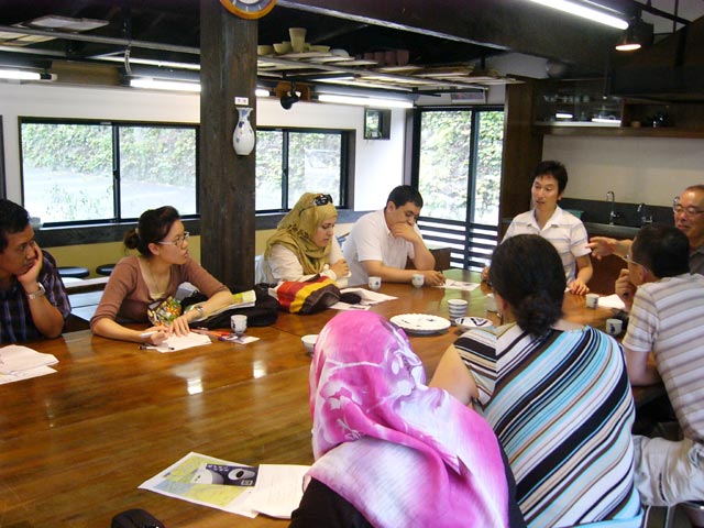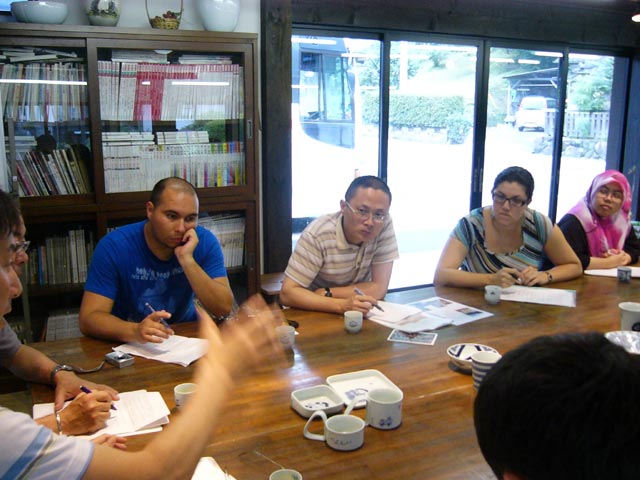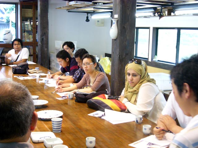工房案内と窯業界について質疑応答の時間も設けていただき、次々と鋭い質問を受けました。逆に学ばさせていただきました。短時間ではありましたが、中味の濃いグローバルな交流ができました。(2009/7/22)
