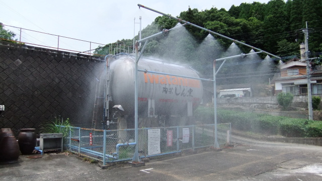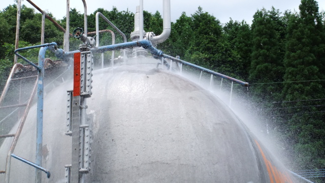 ガスタンク冷却作業