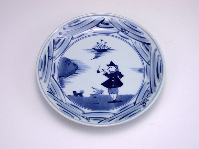 長崎紋玉渕7寸ケーキ皿 しん窯 青花
