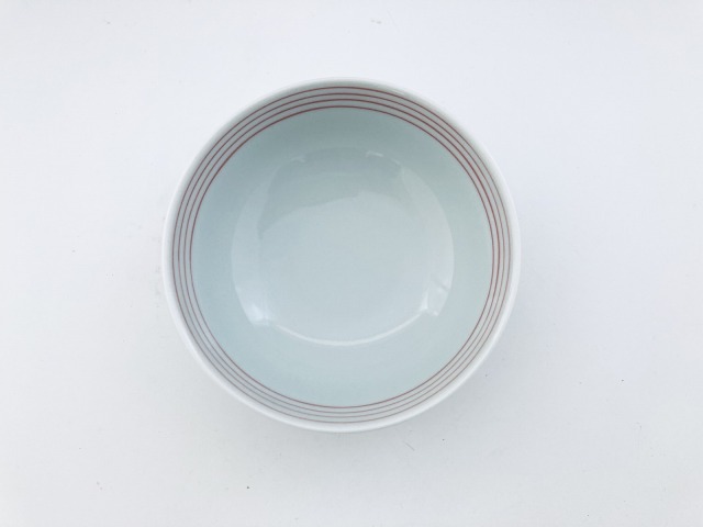 使い勝手の良い12センチの取鉢。毎日、すぐ使える器です。渕の外側にライン加工を施し、柔らかく温かい釉薬が溶け込んで優しいラインを浮き彫りにしています。内側の渕は外側と同じ本数のラインを朱色と青色で揃えてみました。※写真内の料理はイメージです。お箸、箸置き、お盆、トングは商品に含まれていません。