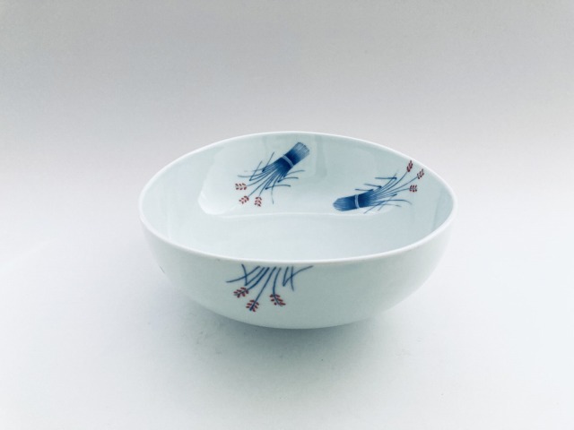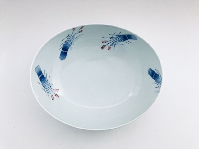 (朱)稲穂 楕円盛鉢 しん窯青花匠
