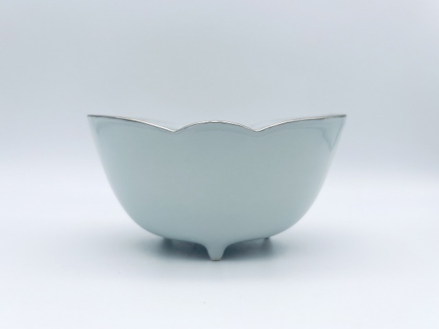 ご紹介するのは、有田焼の名窯「しん窯青花匠」が手がけた、プラチナの縁取りが美しい小付です。