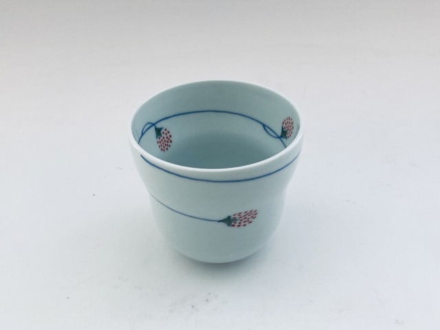 (赤)つるいちご瓢型湯呑 しん窯青花匠