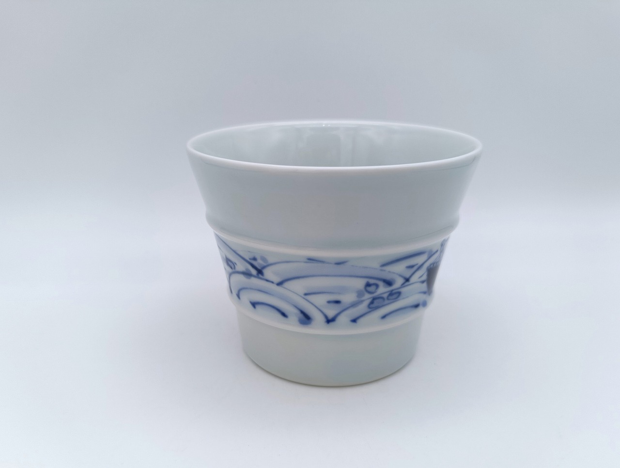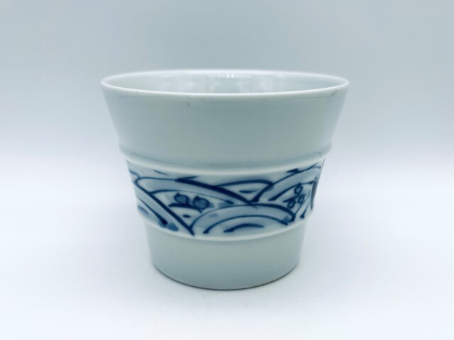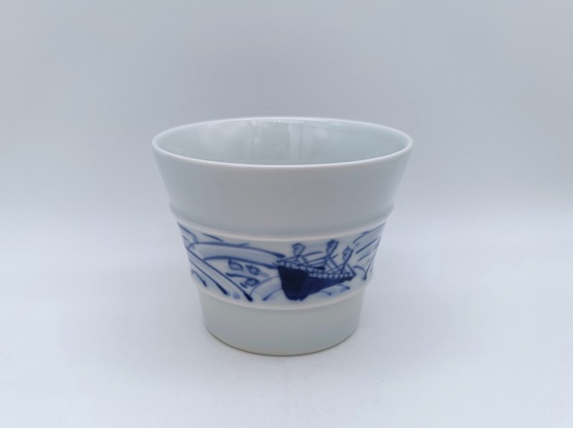 波と帆船 線段そば猪口 しん窯青花 限定商品