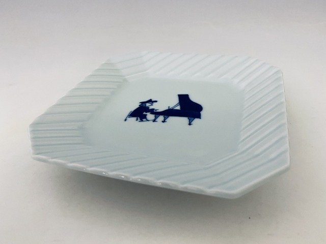 ハーモニー ピアノストライプ隅切り皿 しん窯 青花