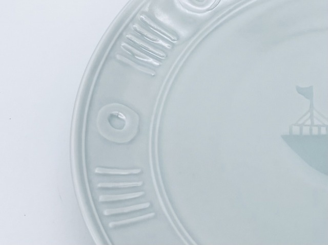 陽刻渕濃帆船丸皿 しん窯青花刻