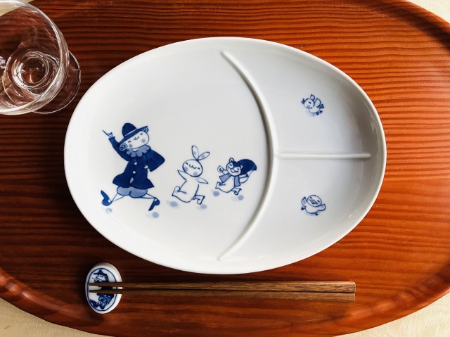 mo紅毛人仕切皿 しん窯青花
