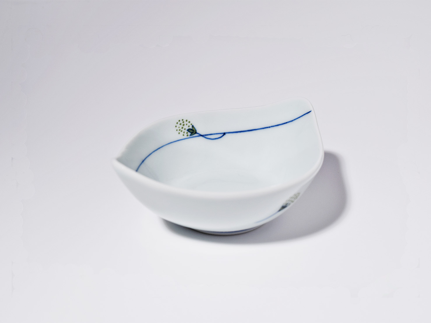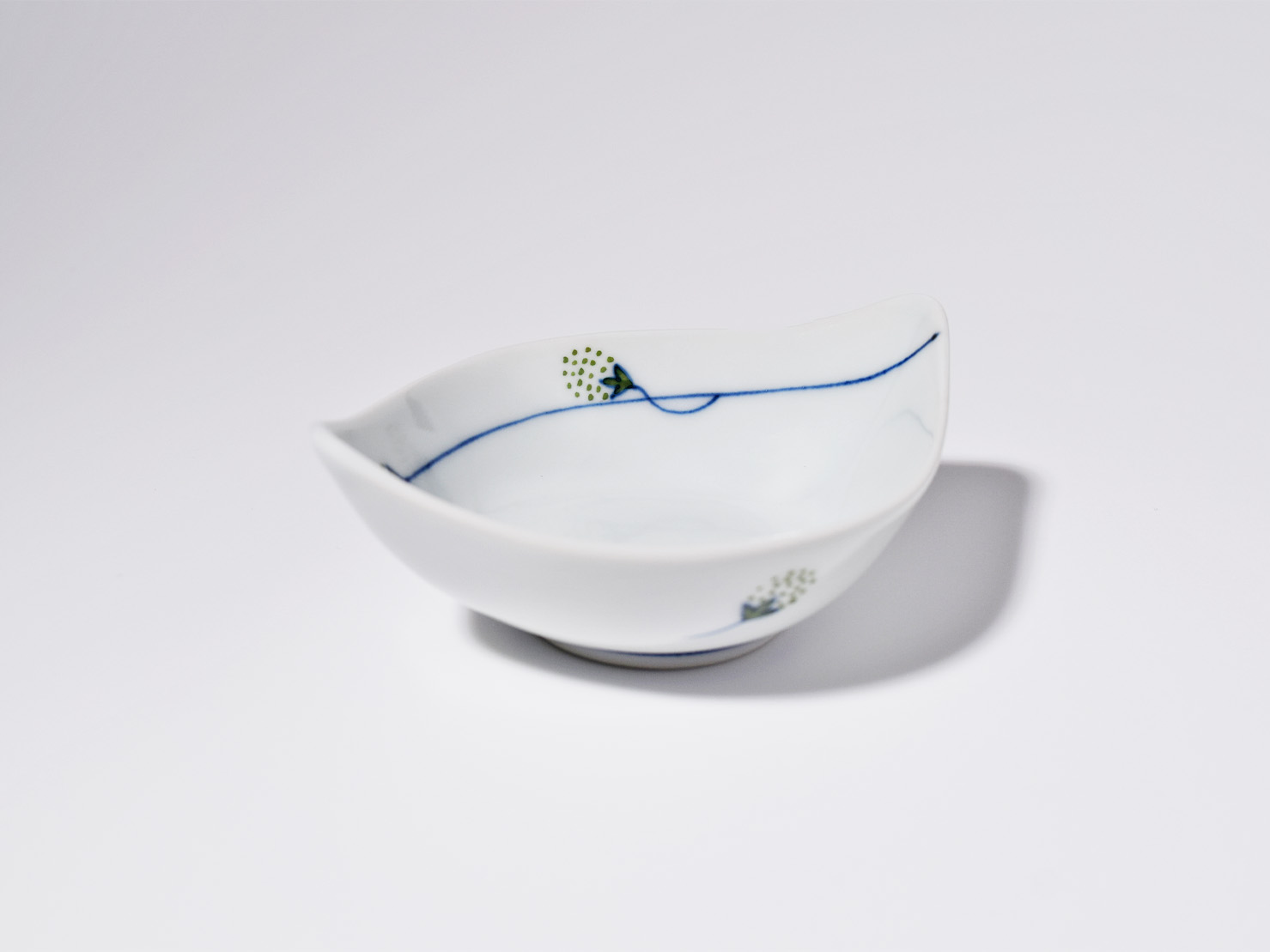 (緑)つるいちご舟型小鉢 しん窯青花匠