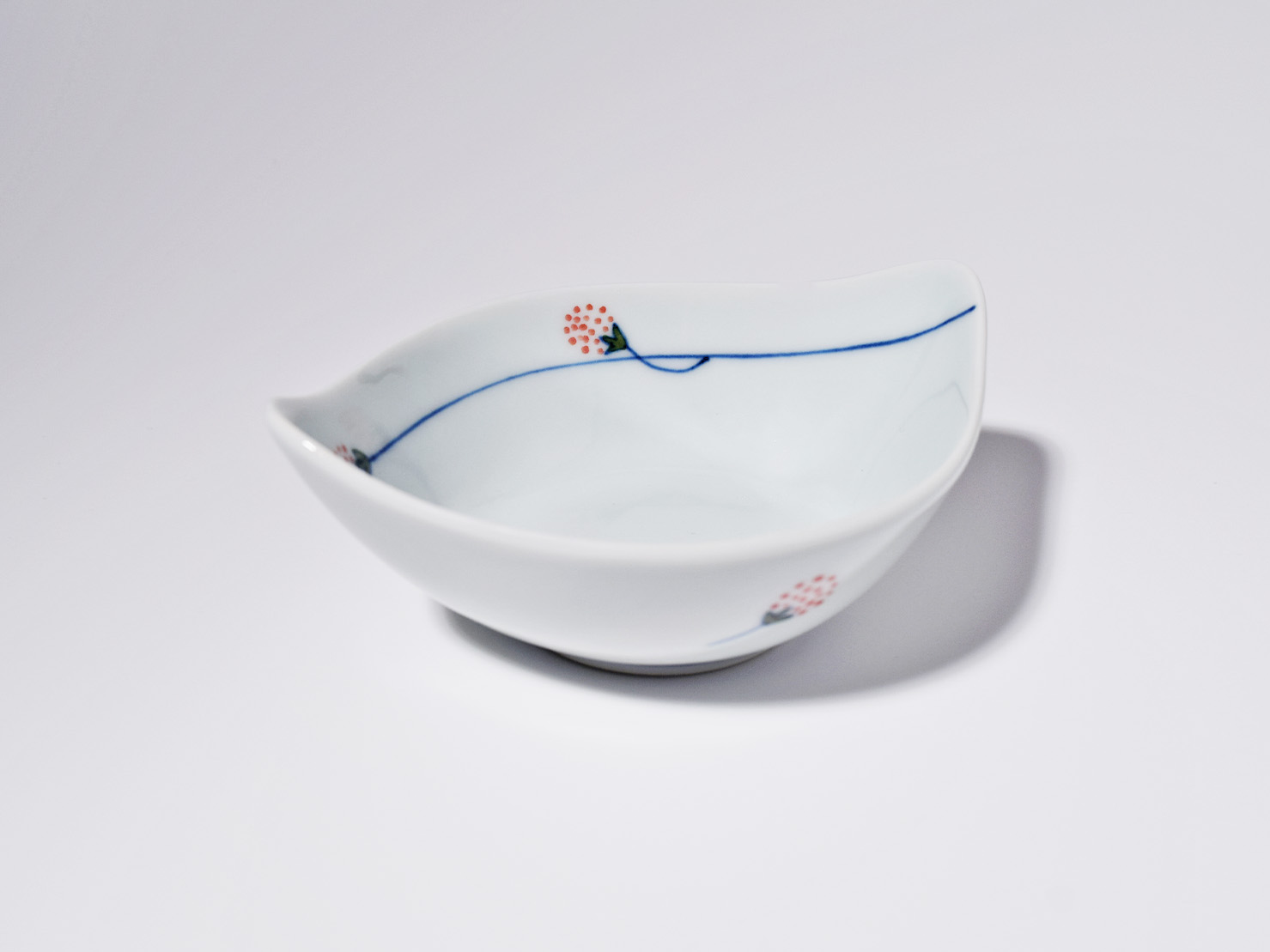 (赤)つるいちご舟型小鉢 しん窯青花匠
