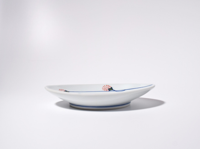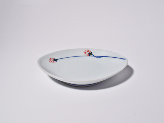 (赤)つるいちご舟型小皿 しん窯青花匠