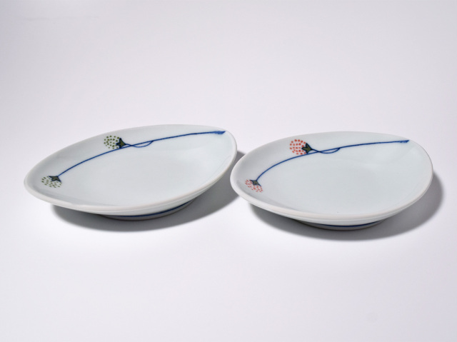 (赤)つるいちご舟型銘々皿 しん窯青花匠