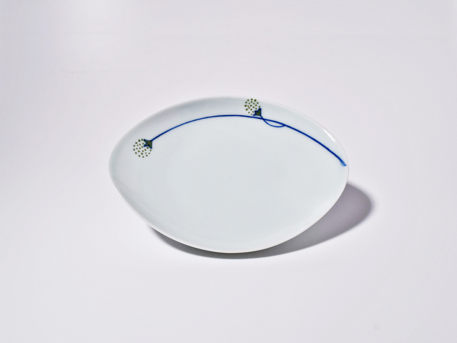 (緑)つるいちご舟型小皿 しん窯青花匠